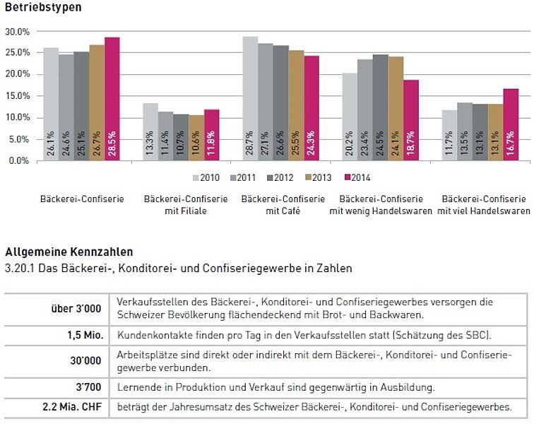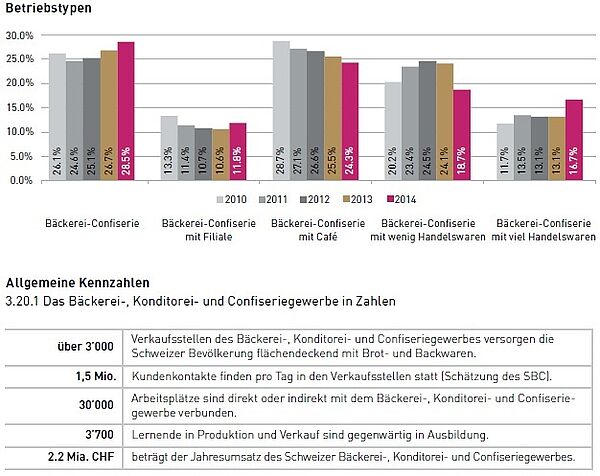 Die Folgen: In den gewerblichen Bäckereien sinken der Umsatz pro Mitarbeiter und der Bruttoerfolg (ausser bei Betrieben mit Cafés), der Cashflow ist generell zu tief (40 % der Betriebe haben schlechte Überlebenschancen) und die Filialisierung nimmt weiter zu (oft Bäckereisterben genannt). In gewerblichen Bäckereien herrscht Handarbeit vor. Industrielle Betriebe, die heute ebenfalls eine hohe Qualität anbieten, besitzen automatisierte kontinuierliche Backstrassen, stellen aber in der Schweiz die Teige batchweise her.