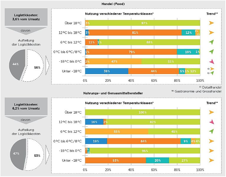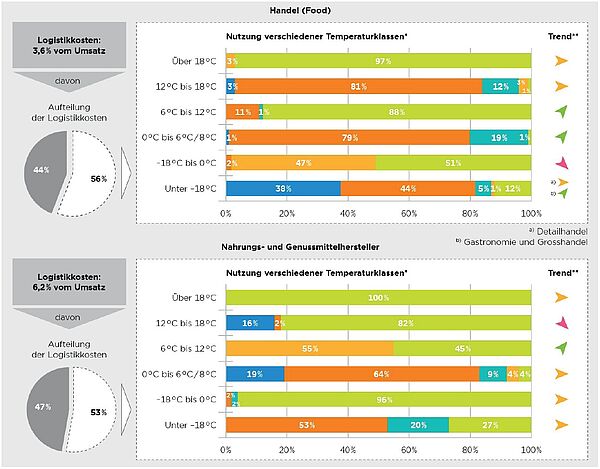 Ferner werden der Anteil der temperaturgeführten Logistikkosten an den Logistikgesamtkosten sowie die Nutzung verschiedener Temperaturklassen für ausgewählte Branchencluster untersucht.