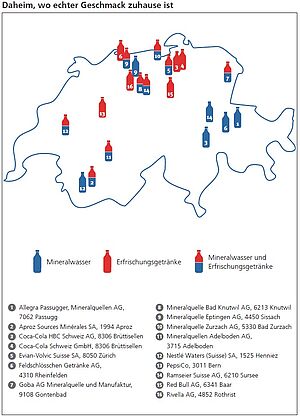 Es besteht seit eh und je eine starke Verankerung der Erfrischungsgetränkeproduzenten mit ihrer Region, sei es in den Bergen oder im Flachland. Rund 20 000 Arbeitsplätze sind in der Schweiz direkt und indirekt mit der Erfrischungsgetränke- und Mineralwasserbranche verbunden. Die Branche ist somit ein wichtiger wirtschaftlicher Sektor, der aus dem Schweizer Wirtschaftsgefüge nicht mehr wegzudenken ist.