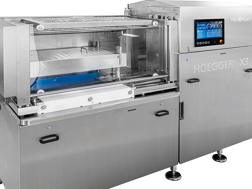 Die Hoegger X3 Formpresse arbeitet mit 3-dimensionaler, servogesteuerter Presstechnik und führt mit intelligenter Kraftkontrolle ein schonendes und trotzdem effizientes Formpressen von Fleischprodukten aus. Dabei entstehen präzise ausgeformte Produkte, die eine homogenere Portionierung ermöglichen und damit die Ausbeute beim Slicen erhöhen. Das schnelle aber schonende Verfahren reduziert zudem die Riss- und Faltenbildung des Produkts beim Pressen auf ein Minimum. Die kompakte Anlage verarbeitet verschiedene Frischfleisch-Produkte mit und ohne Knochen und wird besonders gern zur Herstellung von Bacon eingesetzt. Eine neue Chance für die Verarbeiter bietet das neue Loadsensing-Modul von Provisur, mit dem die Betriebskosten gesenkt und die Nachhaltigkeit der Anlage deutlich gesteigert werden. Dabei ist der Investitionsbedarf gering, was eine schnelle Amortisation bedeutet.