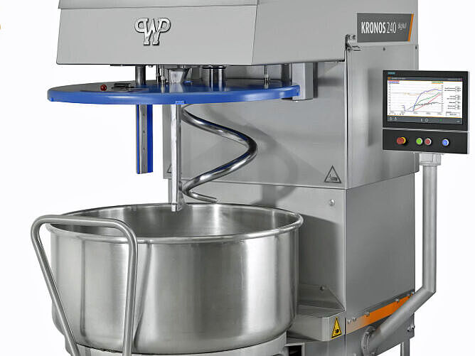 Der Spiralkneter Kronos digital von WP-Kemper kann fühlen wie es dem Teig geht. Er weiss, wann er den Knetprozess beenden muss, weil ein umfangreiches Expertenwissen implantiert ist. Er liefert stets identische, vollständig reproduzierbare Teigqualitäten unabhängig von Ausbildung und Erfahrung der für ihn zuständigen Mitarbeiter. Dabei lässt er sich einfach bedienen. Der Kronos digital benötigt nur den Startschuss, alle weiteren Aufgaben übernimmt er von allein.