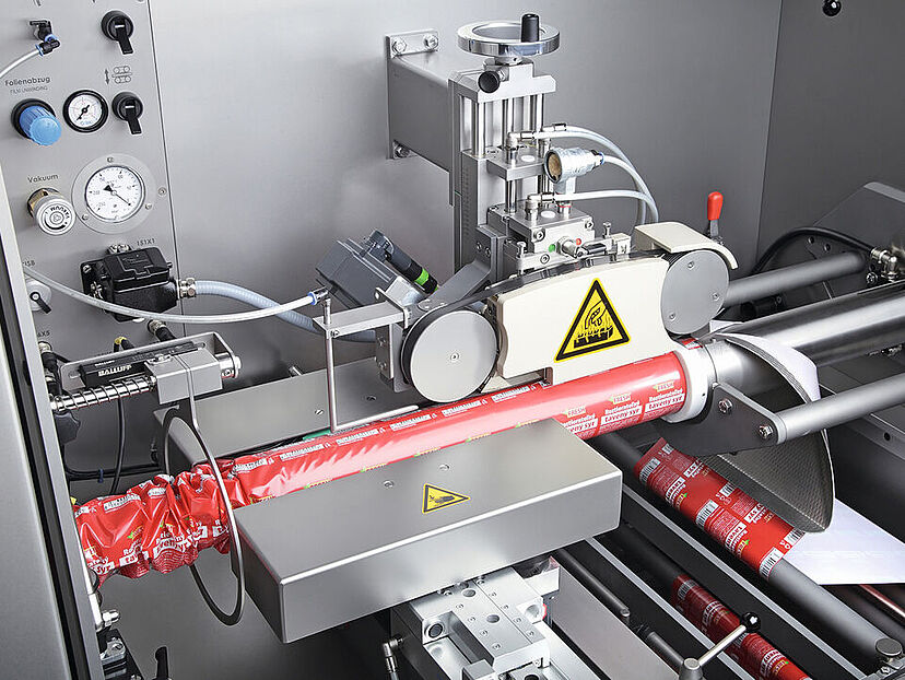 Dank fortschrittlicher Siegeltechnologie können füllfähige Verpackungen aus Verbundfolien hergestellt werden, die ideal für Snacks, Wurstwaren, Fertiggerichte, Käse und weitere Kleinportionen sind. Die Verwendung von Flachfolie statt gerafftem Darm reduziert Materialkosten und sorgt für eine nahezu hundertmal längere Produktionsdauer ohne manuellen Wechsel.